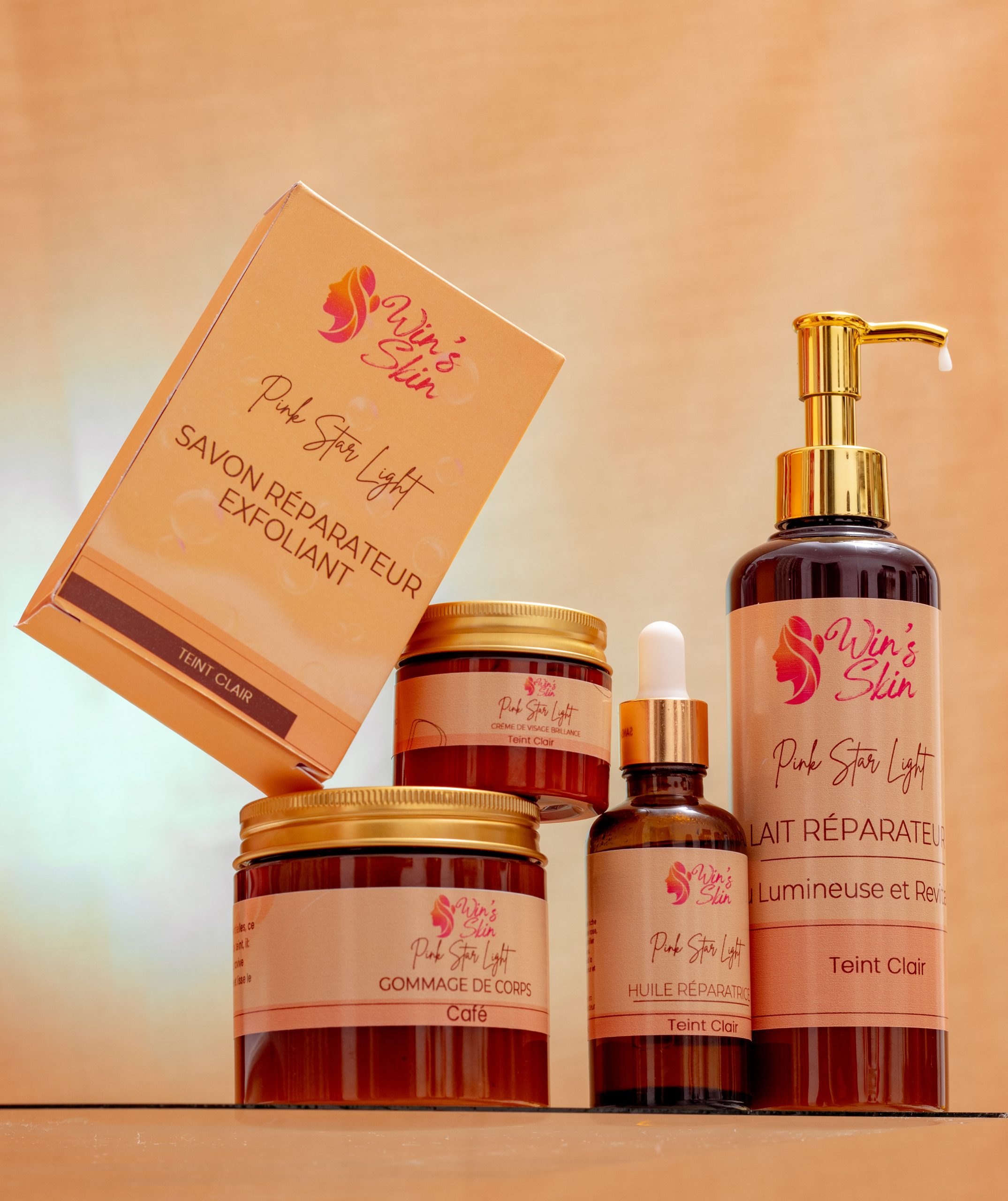 Avec sa formule réparatrice, nourrissante et naturellement éclaircissante, cette gamme vous débarrasse de toutes vos imperfections corporelles, hydrate, rajeunit, Adoucit, unifie et vous donne un teint clair naturel lumineux, une peau revitalisée.
