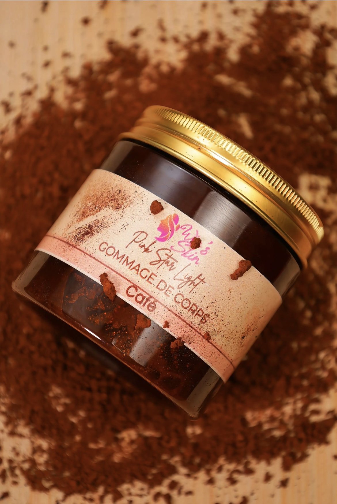 Extrait de café, sels minéraux, AHA et d’huiles Essentielles, ce gommage est un révélateur de teint. Il:
