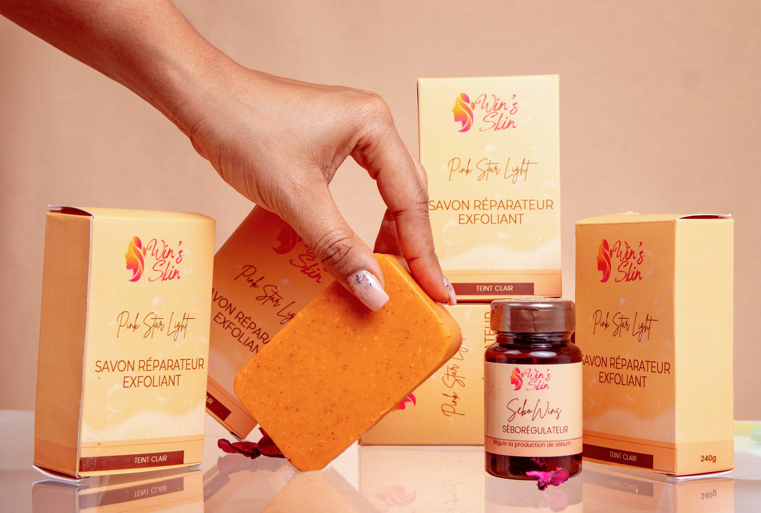 Aux extraits de vitamine C, d’huile de rose, d’acide de fruits et de noyaux d’abricot, ce savon vous garantit une triple action : Réparatrice, Exfoliante et naturellement éclaircissante. Il répare, régénère la peau en profondeur et lui donne un teint clair naturel, uniforme et lumineux.
